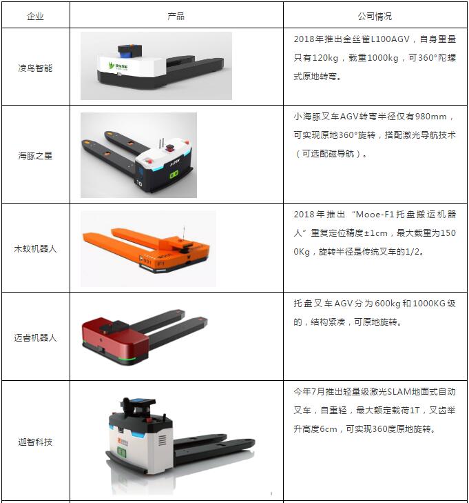 表:國內部分緊湊型托盤叉車AGV廠商