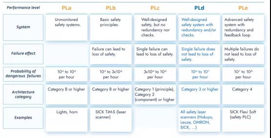 EN ISO 13849-2015標(biāo)準(zhǔn)定義了不同安全部件所需的性能級(jí)別(PLa to PLe)。行業(yè)標(biāo)準(zhǔn)要求AGV制造商達(dá)到的是PLd級(jí)別的安全規(guī)劃。具體來(lái)說(shuō),這種安全水平確保了車(chē)輛在發(fā)生單一故障時(shí)仍能繼續(xù)運(yùn)行,例如使用兩個(gè)冗余通道。在斷層同步堆積的情況下,仍然可能發(fā)生安全功能的喪失,盡管這種可能性很小。