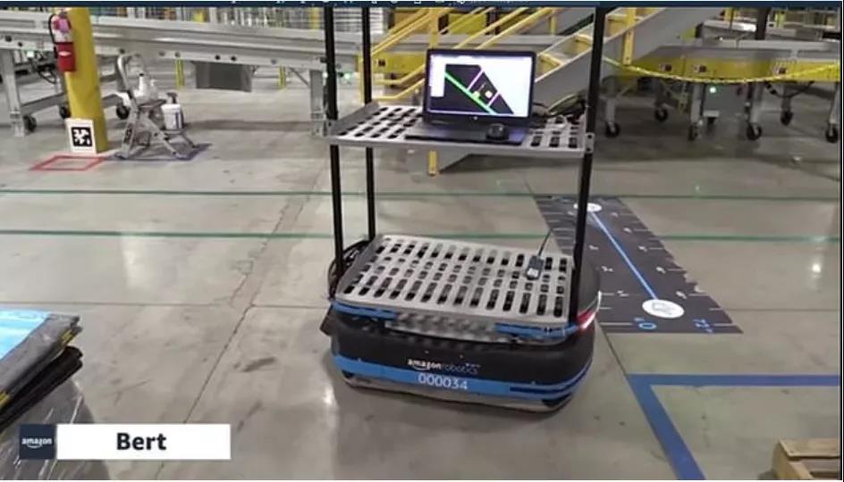 亞馬遜的第一個(gè)自主移動(dòng)機(jī)器人Bert也在開(kāi)發(fā)中,它旨在使用先進(jìn)的安全、感知和導(dǎo)航技術(shù)在其設(shè)施中自由導(dǎo)航。據(jù)亞馬遜稱,Bert不必呆在一個(gè)受限的空間里,將被用來(lái)攜帶單個(gè)物品穿過(guò)其履行中心。將來(lái),Bert也可以用來(lái)移動(dòng)較重的物品或運(yùn)載包裹的推車。