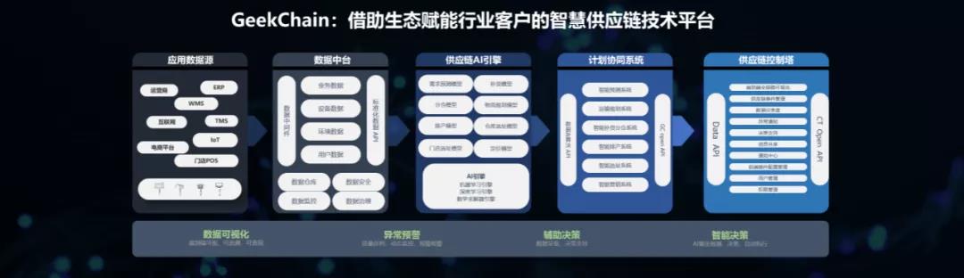 極智鏈(GeekChain):極智嘉極智鏈 (GeekChain) 將作為賦能行業(yè)客戶的智慧供應(yīng)鏈技術(shù)平臺,充分發(fā)揮數(shù)據(jù)中臺和AI引擎的力量,綜合協(xié)同智能排產(chǎn)、智能選址、智能補貨分倉、運輸規(guī)劃、智能預(yù)測等系統(tǒng),最終成為供應(yīng)鏈控制塔,為企業(yè)提供智能決策。