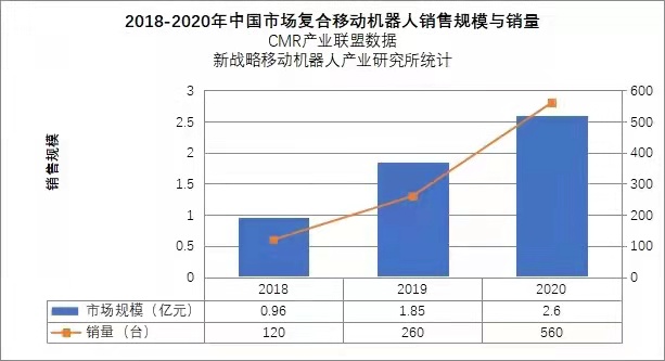圖表:2018-2020年中國市場復(fù)合移動機(jī)器人銷售規(guī)模與銷量
