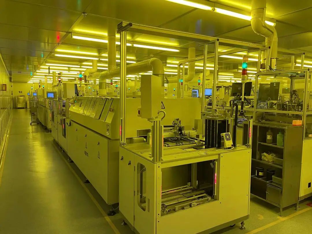 優(yōu)艾智合應(yīng)用彈夾轉(zhuǎn)運(yùn)機(jī)器人,在黃光一體化車間“印刷-顯影-曝光”工藝流程間的自動(dòng)上下料、空籃回收、緩存管理作業(yè)。
