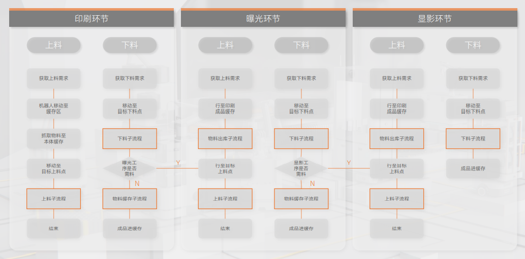 ·完成印刷機(jī)、曝光機(jī)、顯影機(jī)上下料、空籃回收、緩存管理任務(wù)