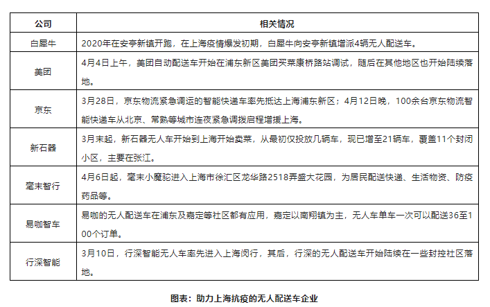 自疫情爆發后,白犀牛、新石器、易咖智車、毫末智行、行深智能等多家無人配送車企業,第一時間馳援上海開展無人配送,協助商超抗疫保供,應對訂單激增、運力緊張所帶來的挑戰。在疫情防控的特殊時期,無人配送車體現出了載重量高、穩定性強、安全性高的特點。居民能從線上批量采購更多的米、面、油、桶裝礦泉水等大件物資,一臺無人配送車的單次載貨能力,相當于3至4名騎手,可有效提升配送效率。同時,面對運力極度短缺的情況,無人配送車可實現24小時的不間斷配送,持續為疫情防控提供助力。
