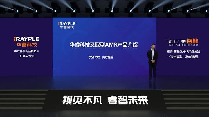 華睿科技叉取型AMR產(chǎn)品總監(jiān)張?jiān)略诒敬伟l(fā)布會上帶來了“安全叉取,高效智運(yùn)”為主題的新產(chǎn)品介紹。他表示“隨著叉車無人化率的不斷提升,托盤和物料的無人化轉(zhuǎn)運(yùn)場景越來越多樣化。為了更好的適應(yīng)場景多樣化,提高倉庫容積率和運(yùn)行安全。全新推出的窄通道堆高式叉取AMR,在取貨通道,安全防護(hù),智能感知等方面全面升級。成熟應(yīng)用于鋰電、包裝、3C等行業(yè)的物料搬運(yùn)及堆高場景。在安全性,穩(wěn)定性,高效率等方面得到了多場景的驗(yàn)證。”