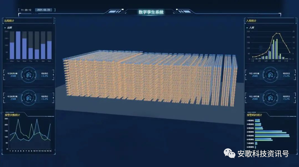在工業(yè)智能物流行業(yè),數(shù)字孿生技術(shù)也發(fā)揮著重要作用。通過對(duì)真實(shí)世界的物流設(shè)備進(jìn)行虛擬,能夠依賴大數(shù)據(jù)和機(jī)器學(xué)習(xí),對(duì)海量物流數(shù)據(jù)進(jìn)行分析、優(yōu)化倉(cāng)庫(kù)的存儲(chǔ)結(jié)構(gòu)、優(yōu)化設(shè)備的運(yùn)行效率,并協(xié)助決策與維護(hù),為企業(yè)釋放極大潛力。安歌科技作為一家以創(chuàng)新驅(qū)動(dòng)的全鏈路工業(yè)智能物流解決方案提供商,其核心產(chǎn)品數(shù)字孿生系統(tǒng)可實(shí)現(xiàn)大數(shù)據(jù)分析,立體可視化,實(shí)時(shí)可見,全流程動(dòng)態(tài)展示,下面就讓我們一起來分享下安歌科技數(shù)字孿生技術(shù)在智能物流領(lǐng)域的探索與應(yīng)用。