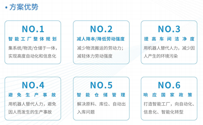 建設成效:為客戶打造智能工廠/數字工廠樣板,推動傳統制造業轉型升級;智能物流有效減少生產崗位搬運人員配置,拉動生產節拍效率,為企業減員降本、提效增產。