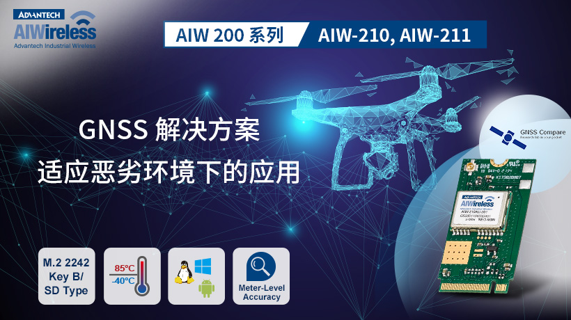 研華近期發布了AIW-200系列的兩個成員-—AIW-210AIW-211。這些先進的GNSS無線模塊具有工業級的寬溫設計,可在惡劣的環境中運行。事實上,這些GNSS模塊利用研華工業無線(AIW)的支持,以及準確的定位能力和可靠的定時信號,為長途卡車運輸、車隊管理冷鏈物流提供導航能力,同時在農業無人機重型設備中得以實施。
