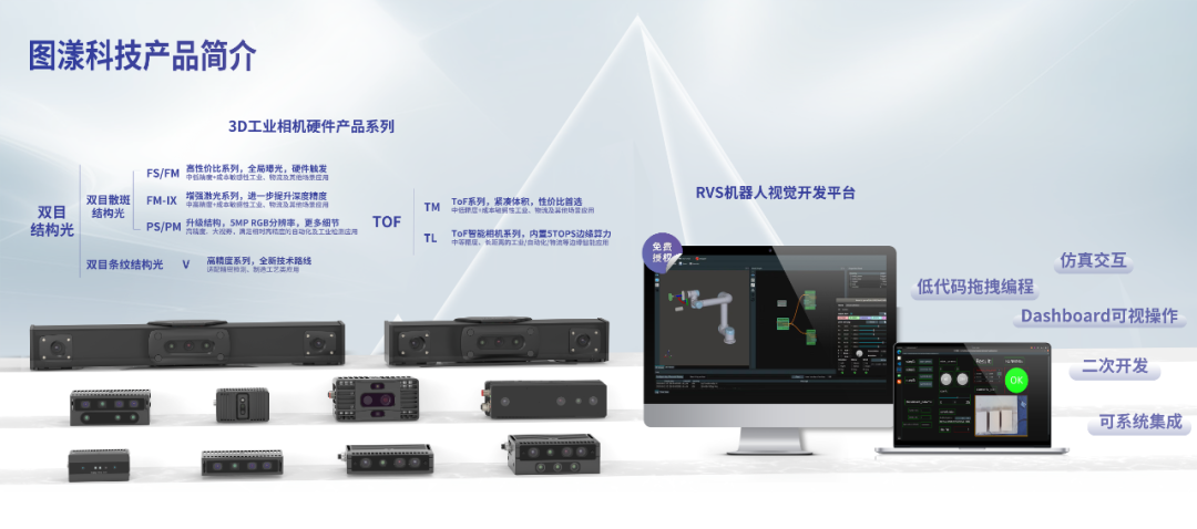 圖漾科技是領先的3D機器視覺企業,長期致力于研發3D工業相機硬件和軟件開發平臺,迄今已經服務于全球超過500家活躍客戶,在工業自動化、工業測量和檢測、物流科技、移動機器人、醫療健康、智能安全、商業應用、教育科研等多個行業實現規模化應用,產品出貨量全球領先。