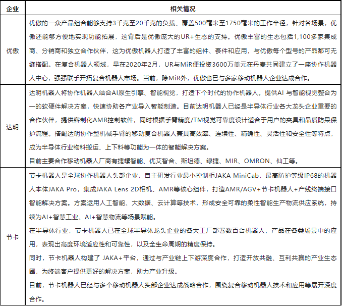 圖:移動機器人企業主要合作的協作機器人廠商