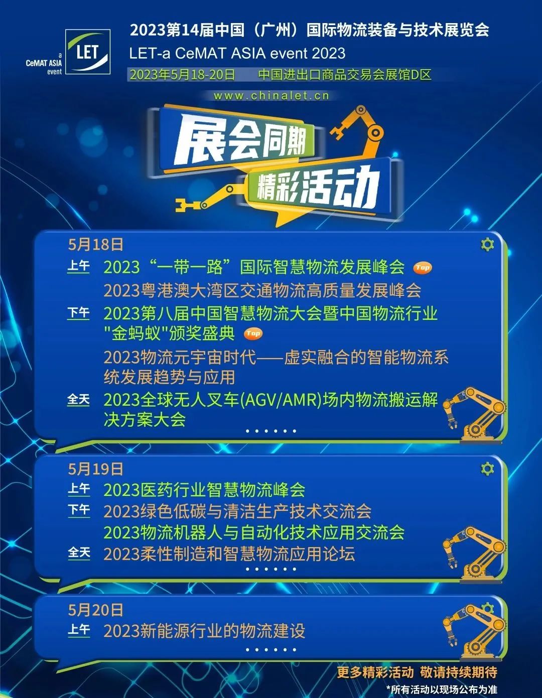 不止于展!LET 2023同期活動(dòng)不容錯(cuò)過。兩大重磅品牌活動(dòng)——2023“一帶一路”國際智慧物流發(fā)展峰會(huì)、2023“金螞蟻”盛典全新升級(jí)、煥新來襲。