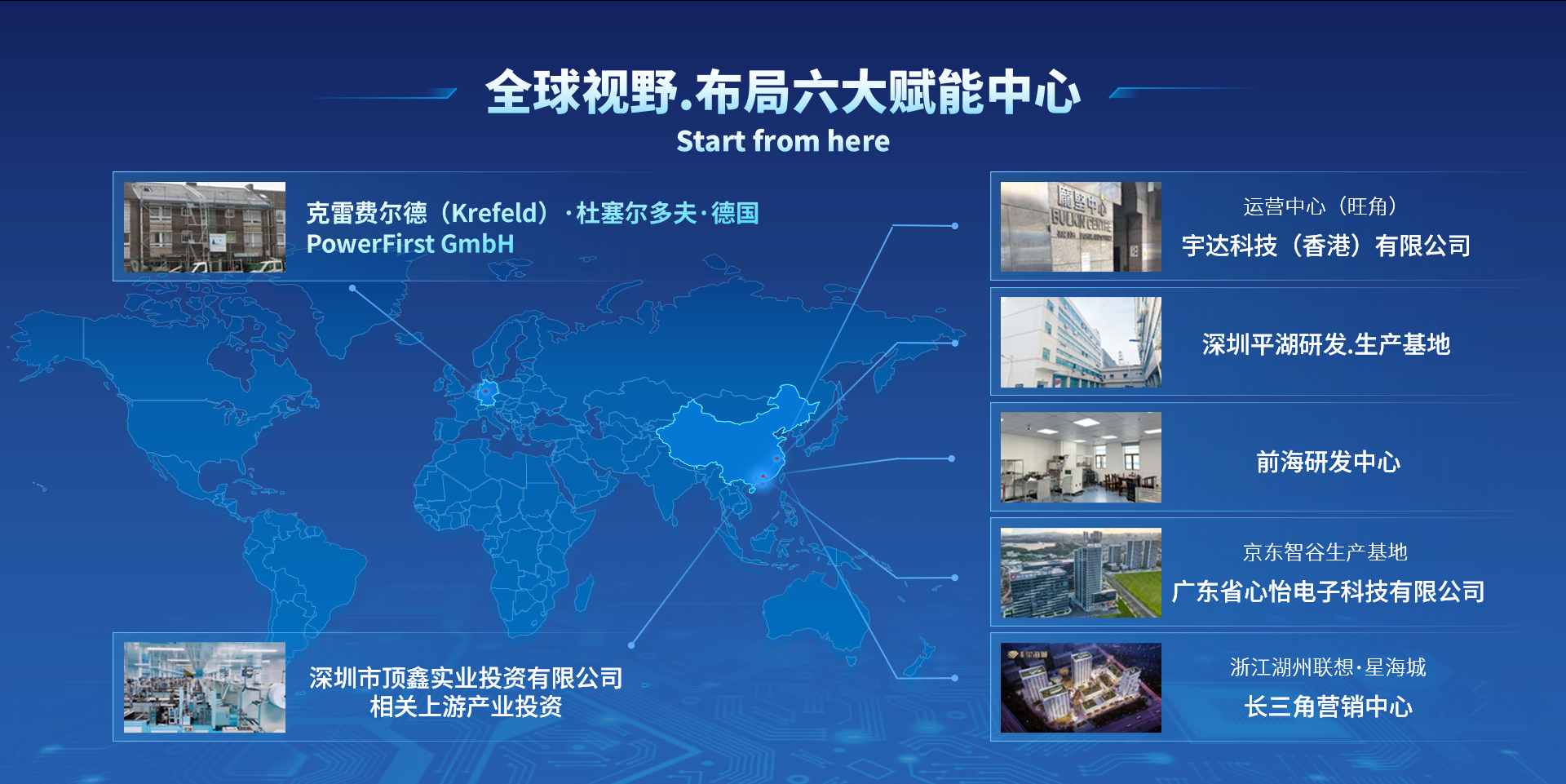 頂尖電源戰略布局放眼全球,在德國、香港、深圳、東莞、浙江湖洲設立6大賦能中心,其中包括2個生產基地,3個研發中心,2個運營中心,為客戶服務提供了強大的后盾支撐。