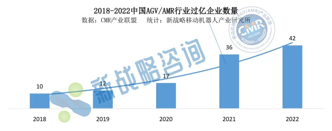 2018-2022中國(guó)AGV/AMR行業(yè)過億企業(yè)數(shù)量
