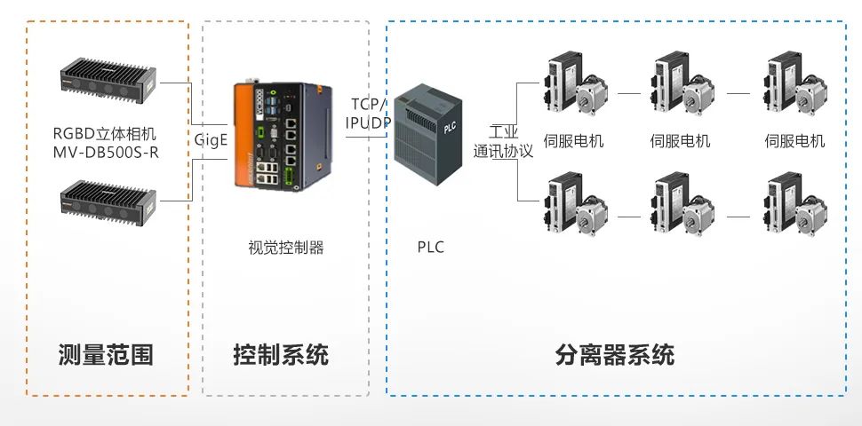 包裹散件扎堆,如何逐一分離?單件分離器視覺系統以MV-DB500S-S為核心,專為快遞物流行業中包裹分揀場景打造,依托自研的3D處理技術以及深度學習技術,對包裹進行實時精準定位,搭配自研的智能控制系統、控制模組帶完成包裹的分離,實現包裹單個通過且相互之間保持固定間隔。