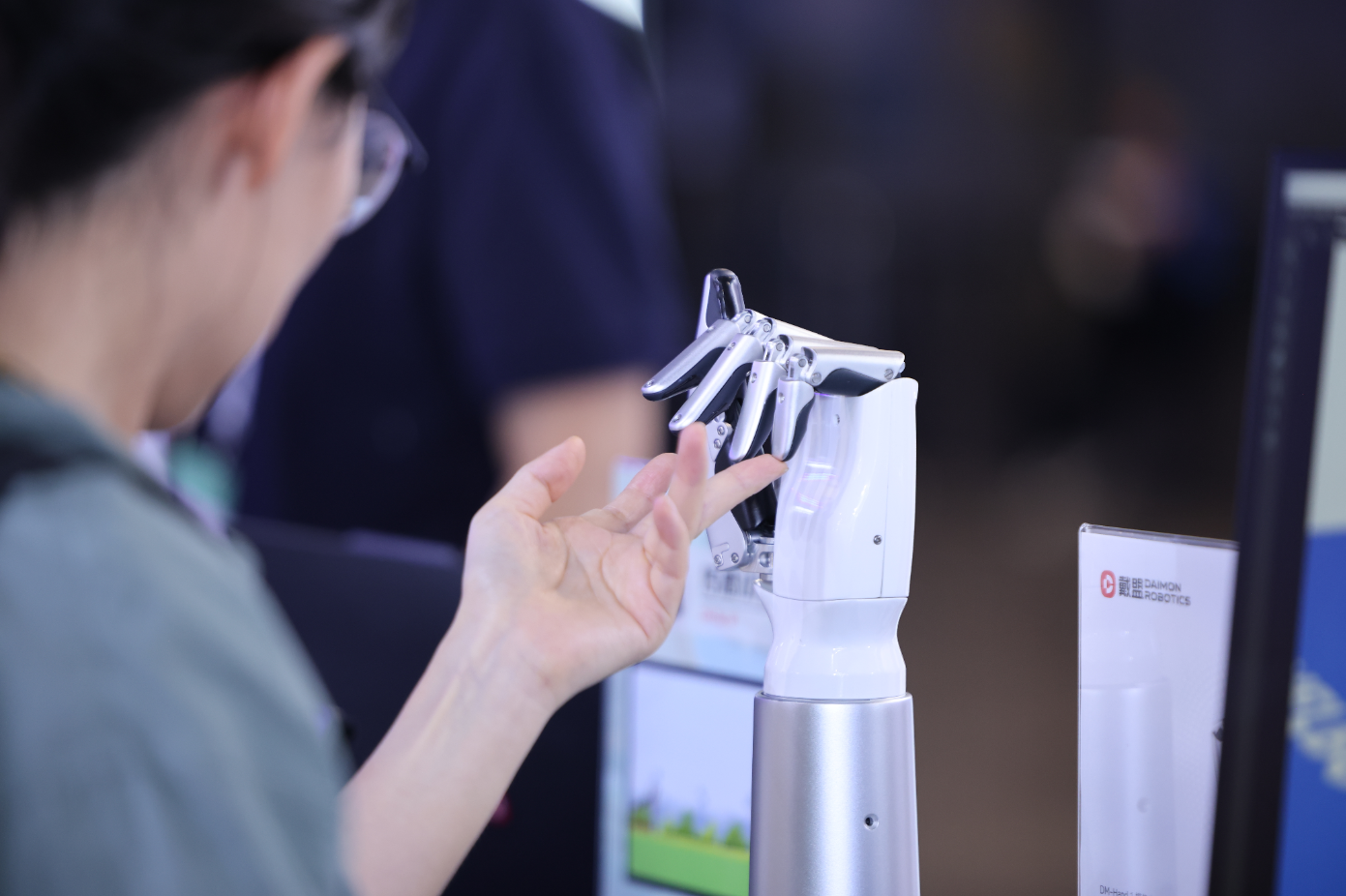 戴盟機器人在本次大會上展示了多款核心產品,包括全球首款多維高分辨率高頻率視觸覺傳感器DM-Tac W、多維觸覺感知五指靈巧手DM-Hand1、“以人為中心的”穿戴式遙操作數據采集系統DM-EXton系列新品及心靈手巧型人形機器人Sparky1集體登場,每一款產品都突顯了戴盟在具身智能領域領先的技術實力及商業化水平,現場甚至吸引眾多同行、友商前來交流。