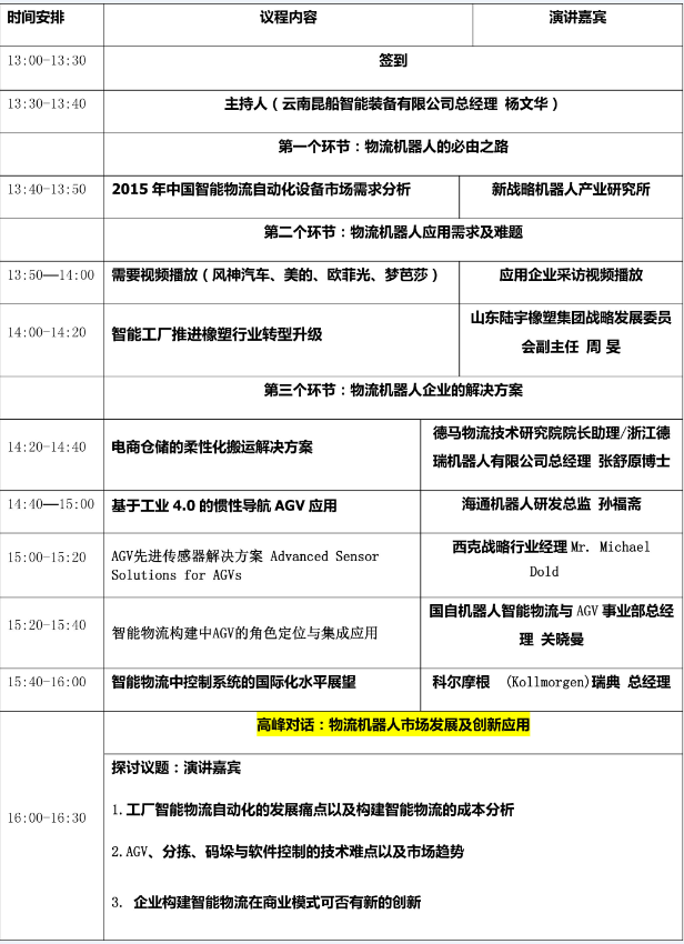 智能物流是利用集成智能化技術,智能設備、使物流系統能模仿人的智能,具有思維,感知,學習,推理判斷和自行解決物流中某些問題的能力。智能物流的未來發展將會體現出四個特點:智能化,一體化和層次化,柔性化與社會化。隨著中國物流應用市場的不斷拓展,包含物流機器人在內的細分市場得到更大的關注。搬運、碼垛、分揀、AGV等均屬于物流機器人行業。他們共同為工廠的自動化物流倉儲改造貢獻力量,而立體化物流技術則是未來工廠的發展需求。為了更好的對這一市場進行分析和探討,新戰略機器人全媒體特別舉辦“2015廠內智能物流與機器人應用發展峰會”,邀請眾多應用廠商和物流機器人制造和方案提供商共同就這一市場進行交流。