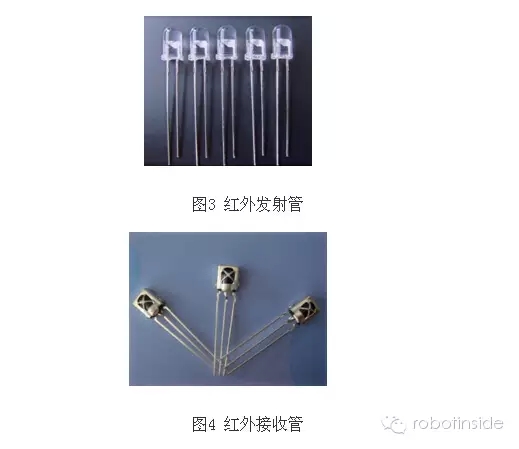 在機器人上的用法多數是將探測臂加長,擴大探測范圍和靈敏度。當機器人撞到前面的障礙物,碰撞開關的信號端便可返回一個高電平,控制芯片由此可以知道小車面前存在著障礙物。碰撞開關的優點是價格便宜,一般每只零售僅幾塊錢,使用簡單,使用范圍廣,對環境條件沒有什么限制。但碰撞開關也有個最明顯的缺點,就是必須在發生碰撞后才能檢測到障礙,這在某些機器人比賽中是相當失分的,在某些實際的應用中實用性也會大大降低,而且使用時間較長后,開關容易發生機械疲勞,無法繼續正常工作。非接觸式測障開關一般的工作原理與聲納和雷達相似,發射聲波或某種射線,遇到障礙物,聲波或射線被反射回來,并被傳感器接收,這時傳感器就認為發現了障礙物。我們最常用的便是發射和接收紅外線的傳感器(圖3,圖4)。