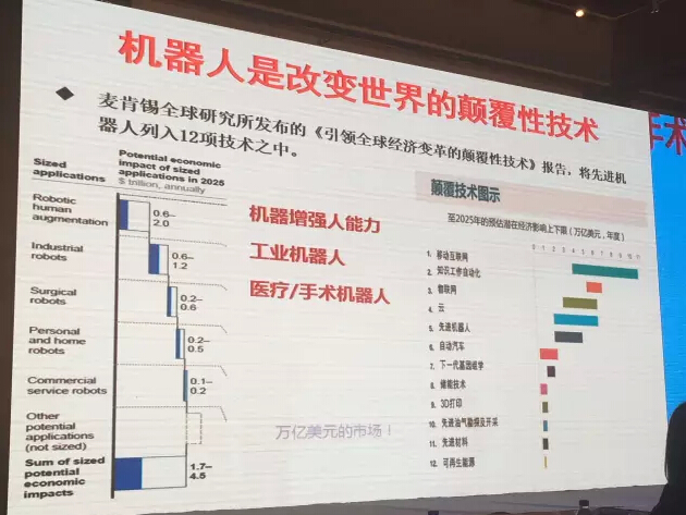 這波浪潮和新能源、互聯網一起交織著推動社會變革,我們的生活方式、溝通、軍事格局都將發生變化。2013年5月麥肯錫提出了12項改變世界的顛覆式技術:移動互聯網、人工智能、物聯網、云計算、先機機器人、下一代基因組技術、自動化交通工具、能源存儲技術、3D打印、先進材料、非常規油氣勘探開采、可再生能源。
