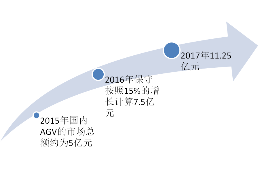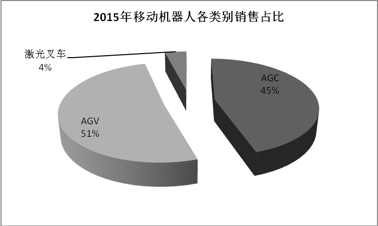2015年國產AGV機器人增長4280臺,較去年同比增長34%,其中AGV產品銷售占比51%,AGC占比45%,激光叉車僅占4%的銷量。2015年AGV市場新增需求主要來自汽車、3C、電商、煙草行業,其中汽車制造業仍然是最為主要的市場。汽車應用領域趨于成熟,也是用量最大的領域,新建汽車廠拉動較為明顯,諸如佛山一汽大眾新廠、成都神龍新汽車廠的建成對AGV增量貢獻明顯;其次在電商領域的應用也有不錯的表現,2015年一些電商建設物流基地,對AGV需求較為旺盛;再者,在3C電子制造業領域也是需求明顯,特別是家電制造。未來三年,流通物流領域和3C電子制造領域對AGV需求將有突破性的進展,增長速度將超過45%,行業將引領快速的發展時期。2015年AGV市場規模大約為5億元人民幣,較去年增長20%。