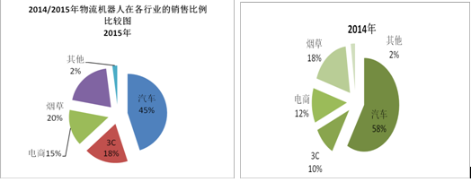 移動機器人AGV作為國產工業機器人的翹楚, AGV在制造業應用中以其高效、準確、靈活地完成物料的搬運任務。并且可多臺AGV組成柔性的物流搬運系統,搬運路線可以隨著生產工藝流程的調整而及時調整,使一條生產線上能夠制造出十幾種產品,大大提高了生產的柔性和企業的競爭力。AGV作為基礎搬運工具,AGV的應用深入到機械加工、家電生產、微電子制造、煙草等多個行業,生產加工領域成為AGV應用最廣泛的領域。但并未在以上機器人數據統計口徑之中,根據新戰略機器人產業研究所的跟蹤總觀察,AGV機器人產業2015年實現平穩發展的同時有部分應用領域增長迅速。
