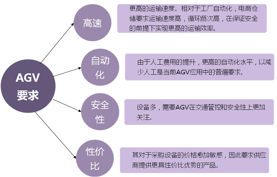 結合AGV的特點,加強對目標行業工藝的研究和創新。隨著AGV的使用范圍越來越廣,AGV的專業知識必須與應用行業的領域知識相結合,以工藝創新為基礎,為AGV的技術創新和產品創新提供源動力。未來企業對AGV的需求不僅僅是簡單的搬運或簡單地替代人力,而是對整個工藝裝備的需求,對提升產品質量的需求,對企業實現MES(制造執行系統)的整體考慮。為此,AGV的技術研發應該更加注重面向工藝、面向成本、面向服務。因此,我們認為,AGV技術仍然有廣闊的發展空間:系統技術需要更加注重與企業的生產管理、物流管理以及工藝路線相結合,追求更高效率;單機控制技術上需要更加人性化,使AGV更為智能,更加易用,更加便于維護。隨著AGV的使用范圍越來越廣,AGV技術的“專業知識”也必須與應用行業的“領域知識”相結合,以工藝創新為基礎,為AGV的技術創新和產品創新提供源動力。