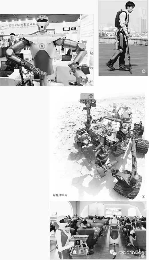 圖②:在2015年11月3日開幕的中國(guó)國(guó)際工業(yè)博覽會(huì)上,中國(guó)航天科技集團(tuán)公司首次展出外形酷似“鋼鐵俠”的機(jī)器人航天員。