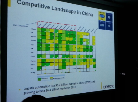 德馬泰克總監王悅透露,去年德馬泰克市場營業額高達17億美金。今年將達21億美金。據預估,2015年中國物流自動化市場容量約為52億美金,2018年將達64億美金。目前中國的物流自動化企業大多在某一細分領域,這幾年是市場整合的大好機會。