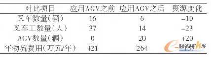 經(jīng)過(guò)AGV應(yīng)用前后的成本分析,可以得到如下對(duì)比數(shù)據(jù),見(jiàn)表1。