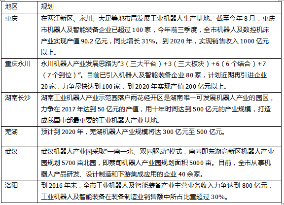 要問機器人火不火,全國各地看產業園。2015年,機器人產業園遍地開花,無論是省市地區還是縣級地區,無不為這一新興的、充滿朝氣的、前景無限的市場所瘋狂。根據統計,全國各地約有40余處建立了機器人相關產業園,僅深圳市就有四處。其他如廣州、東莞、佛山、中山、惠州、珠海、福建等華南區地區,南京、江蘇、浙江、溫州、寧波等華東地區,湖北、襄陽、安徽蕪湖、河南洛陽、鄭州、太原、徐州、四川成都、江西九江、山西晉城、陜西西安等華中地區,遼寧沈陽、沈撫新城、山東青島、濰坊、哈爾濱等華北地區40多個城市將機器人產業作為當地重點發展對象。
