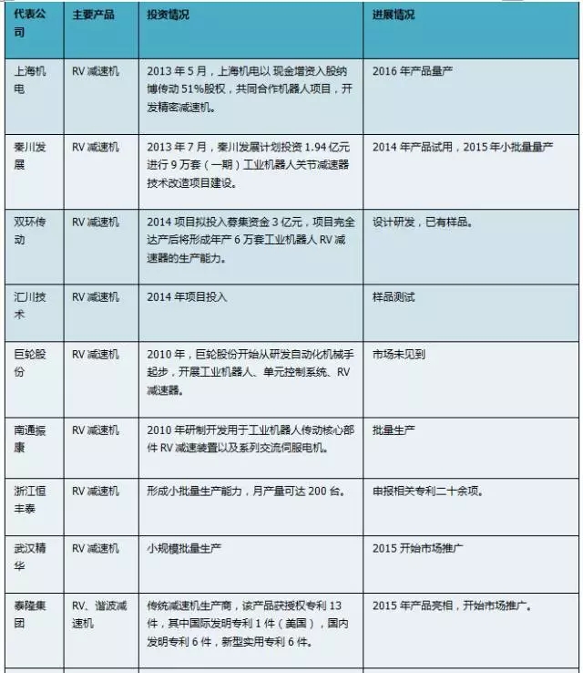 國內主要代表企業投資減速機發展情況