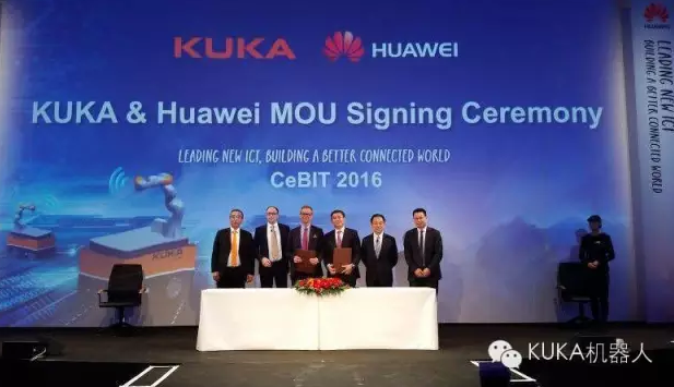 【德國(guó),漢諾威,2016年3月14日】國(guó)際領(lǐng)先的機(jī)器人技術(shù)供應(yīng)商KUKA,與全球領(lǐng)先的信息和通信技術(shù)(ICT)解決方案供應(yīng)商華為,在德國(guó)漢諾威舉辦的CeBIT大會(huì)上,宣布正式建立戰(zhàn)略合作伙伴關(guān)系,并簽訂了合作備忘錄,共同為歐洲和中國(guó)的工業(yè)市場(chǎng)開(kāi)發(fā)智能制造解決方案。
