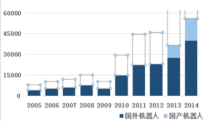 新興企業不斷涌現打破工業機器人市場的現有格局。從市場占有率上看,“四大家族”的壟斷地位日益受到威脅,丹麥優傲機器人生產的6軸串聯工業機器人和Rethink Robotics生產的機器人具備輕巧靈活等特點,廣受市場青睞。各國機器人企業不斷崛起,涌現出埃斯頓、新松、廣州數控等具備相當競爭力的機器人企業,新興崛起的機器人公司使機器人使用成本大幅下降,老牌機器人企業數量和價格上都受到極大影響。2014年,我國機器人銷量已占到全球銷量的約四分之一,其中國產機器人占國內市場份額逐年上升,2014年比重接近29%,與“四大家族”形成數量與價格的強勢競爭。從應用市場上看,工業機器人市場爭奪呈現多元化發展趨勢。企業不再僅僅瞄準傳統的3C(計算機、通信、消費電子)制造領域,而是在家電、可穿戴設備、電子、醫療、物流等新興領域積極搶占技術制高點和市場份額。