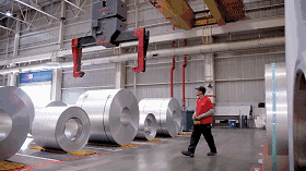 ▼ 輕松將1噸重的原料鋼板卷成一個圈。。