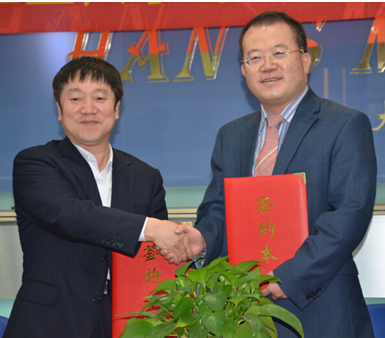 圖二:大族電機(jī)與哈工大(深圳)雙方簽約(左為姚英學(xué),右為李玉廷)