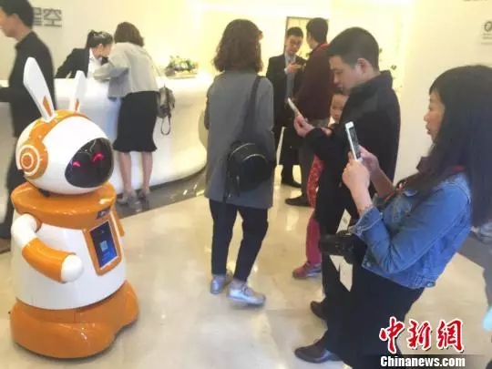 “您好,歡迎光臨。”走進(jìn)位于常二路與海曙路交匯處的萬科·星空售樓部,作為三名特殊“員工”之一,一臺(tái)一米多高、橙白相間顏色的迎賓機(jī)器人吸引了眾多參觀者駐足留影。在沙盤模型區(qū),白色的人工智能機(jī)器人正“認(rèn)真”為參觀者講解著項(xiàng)目區(qū)位配套。而最后一部機(jī)器人,則在為參與萬科“盲訂計(jì)劃”的到訪者們計(jì)算著“盲訂系數(shù)”。