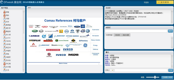 在線展進行時,柯馬公司機器人事業部的銷售經理胡晨濤依托其多年的相關技術及銷售經驗,圍繞《智能制造的開放式解決方案》主題與大家一起探討工業4.0在現實中的困局以及柯馬機器人對于智能生產困局的解決方案。演講分別就控制系統之爭、總線通訊之爭、控制軟件之爭進行深度探討,并表示所謂的工業4.0已經成為柯馬過去幾年里的戰略目標。另外,還談到柯馬機器人因為有了openROBOTICS概念從而成為客戶機器的有機組成部分,帶來了順利集成的優勢。