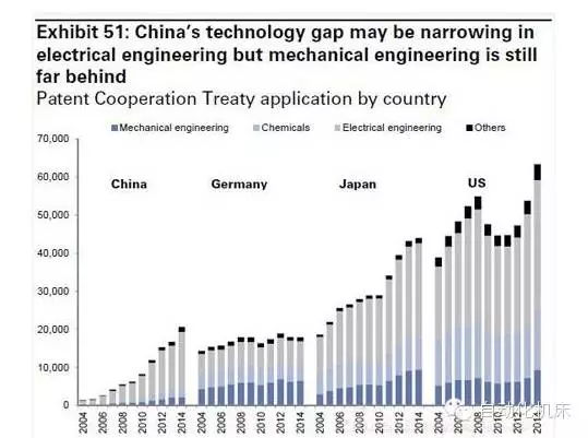 下圖顯示中國在電子工程行業(yè)與發(fā)達(dá)國家的差距在縮小,但機(jī)械工程方面的差距還落后較多: