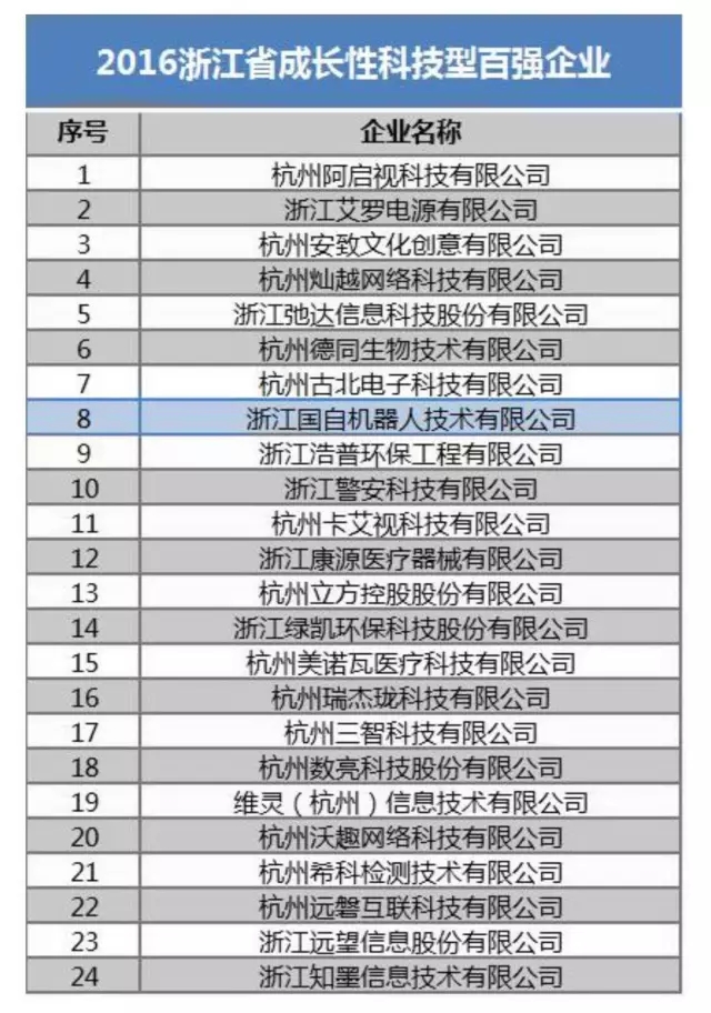 眼下,“大眾創業、萬眾創新”的口號在不斷深入人心的同時,浙江省科技型中小微企業的發展勢頭也是一浪高于一浪。當然,高新技術企業中也不乏榜樣企業。2016年5月13日,2016浙江省成長性科技型百強企業在杭州揭曉,浙江國自機器人技術有限公司光榮入選。