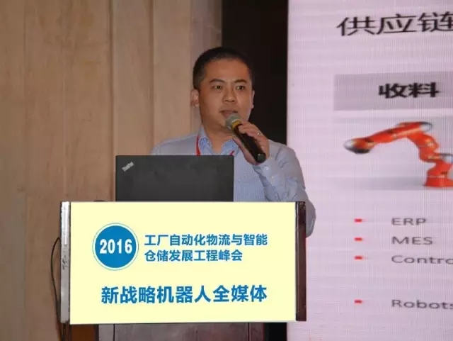 日東電子高級物流總監 李國華;他從眾多的物流倉儲應用案例入手,詳細的分析了使用自動化設備后的人工對比,投入產出對比,更加直觀的將應用呈現在聽眾面前。