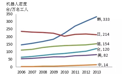 汽車行業機器人密度對比
