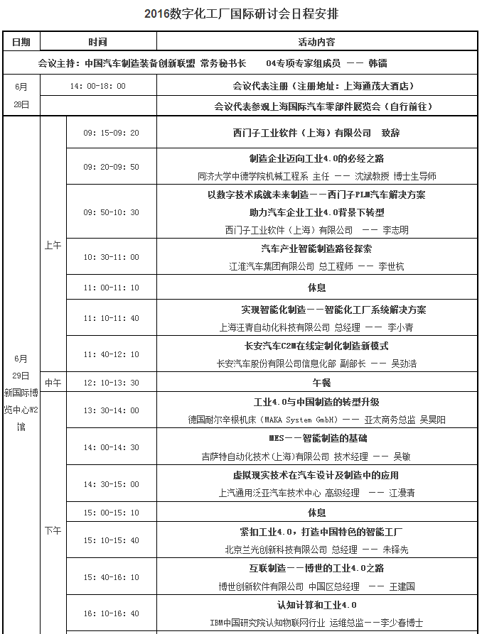 2016數(shù)字化工廠(chǎng)國(guó)際研討會(huì)日程安排