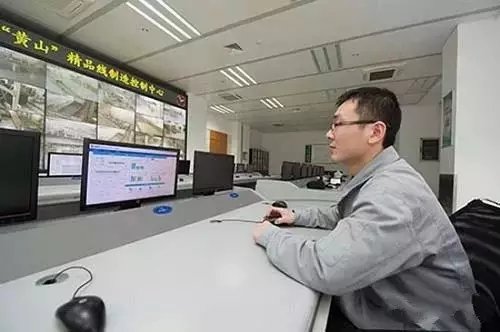 安徽中煙合肥卷煙廠中控室操作員胡偉生在利用“大數據”智能平臺查看制絲車間班次生產相關信息。