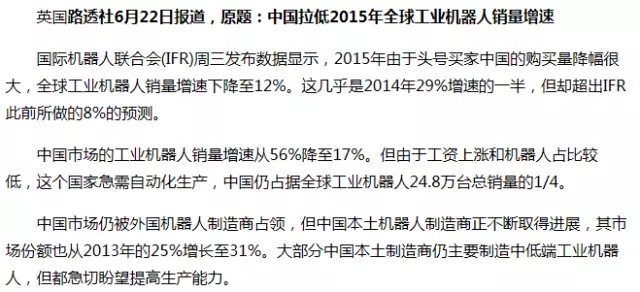 作為國內最大的機器人產業化基地,沈陽新松機器人財報顯示,2015年的營業收入也僅16.85億元。哈爾濱博實自動化公司營收7.1億。而另一家業內較為知名的南京埃斯頓自動化公司2015年營業收入也僅4.8億,營收還同比下降了5.6%。