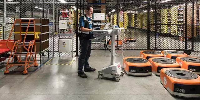 亞馬遜的倉庫里十分繁忙:工人們把商品進入黃黑色的箱子;高聳的液壓臂舉起沉重的箱子;橙色機器人大軍沿地面前進,運載著從暢銷書到廚房用具的各種商品。這些就是亞馬遜2012年斥資 7.75億美元收購的Kiva機器人。通過這次收購,52歲的亞馬遜首席執行官杰夫·貝索斯(Jeff Bezos)幾乎成為整個行業的主宰。他決定只在亞馬遜使用這些機器人,不再向其他倉庫運營商和零售商銷售Kiva產品。