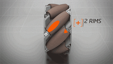 而之所以能做到如此靈活,完全是由于特殊的輪子設計。這種設計可以使得每一個輪子無須轉向即可完成任意角度的行進。。