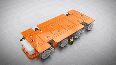 而這樣的運輸平臺在工廠中的應用將十分廣泛,比如對于狹窄空間的轉向應對自如,還可以幫助大型部件進行組合,而不需要太多地騰挪空間。。。而這一點是傳統(tǒng)叉車車輛很難實現的。。
