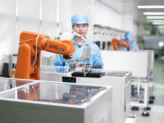 答:沒錯,偌大的生產制造車間遍布橙色的小鐵人,包括一些組裝環節都用到了機器人,效率大大提升!