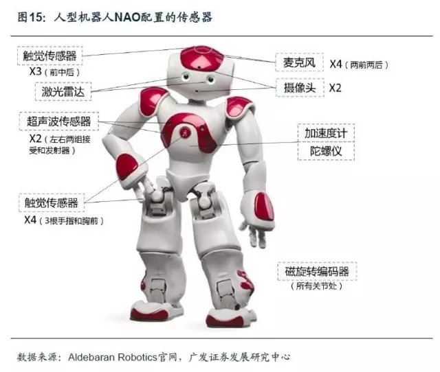 日本軟銀和法國Aldebaran Robotics合作開發的情感交互型機器人Pepper,首發1000臺1分鐘之內就被日本消費者搶購一空。Pepper也配備了多種傳感器以實現人機交互的功能:攝像頭、紅外傳感器用來識別人面部表情特征判斷使用者情感;位于雙眼的固定式激光雷達(激光測距儀)用來在行進的過程中測量障礙物和使用者,并與使用者保持合適的距離;麥克風用來接受使用者的語音信息;觸覺傳感器用來感受使用者的接觸等。