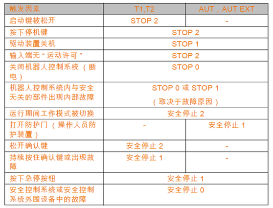 停止類別2:,又稱Stop 2:完全通過伺服系統減速,停止后不切斷動力電源,電機仍處于通電狀態,是完全受控的停止方式;現在機器人的程序停止均屬于此類。