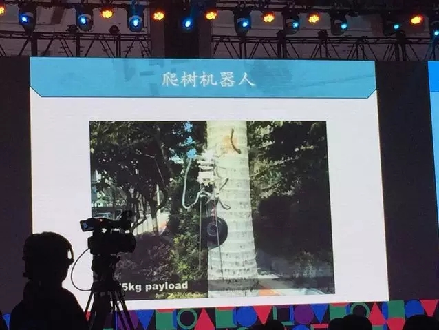 第一款機器人是爬樹機器人,徐院士講它什么樣的樹都可以爬,同時提出了幾個需要思考的問題: